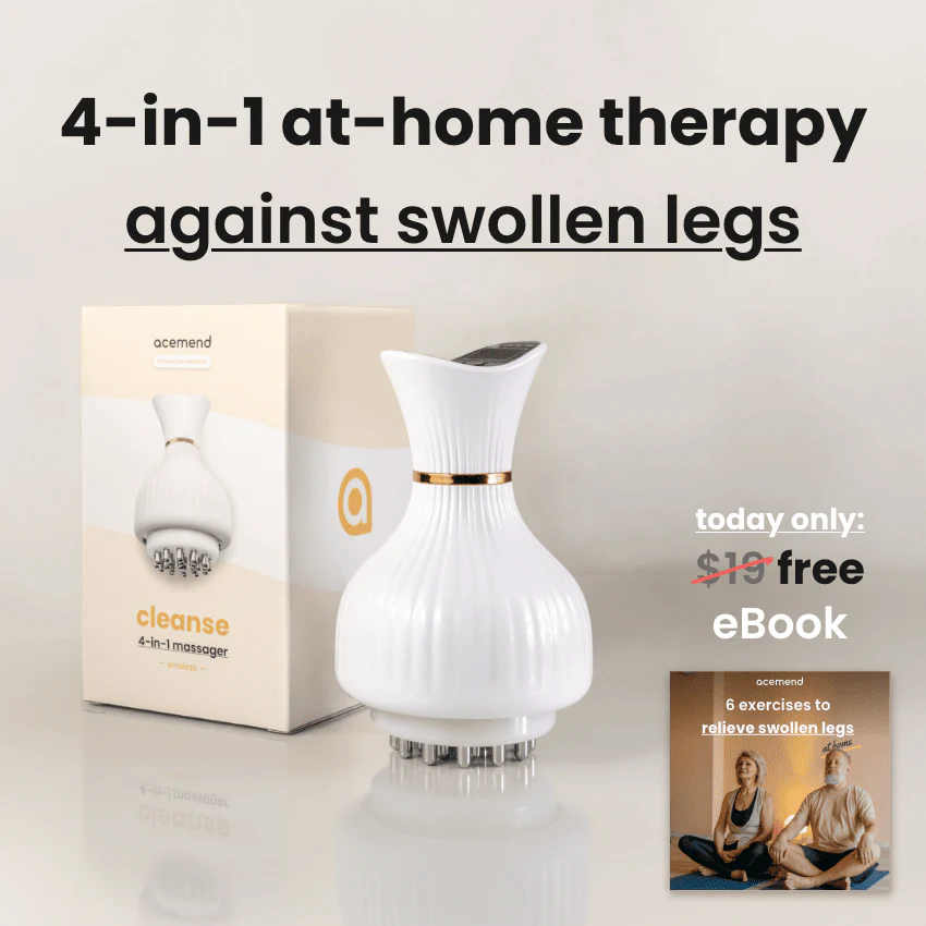Massaging your legs with Cleanse for just 10 min. a day, progressively improves blood circulation, reduces inflammation, varicose veins, & eliminates painful swelling from any type of edema or neuropathy, using the combined power of EMS, vibration, heat therapy, and red light.